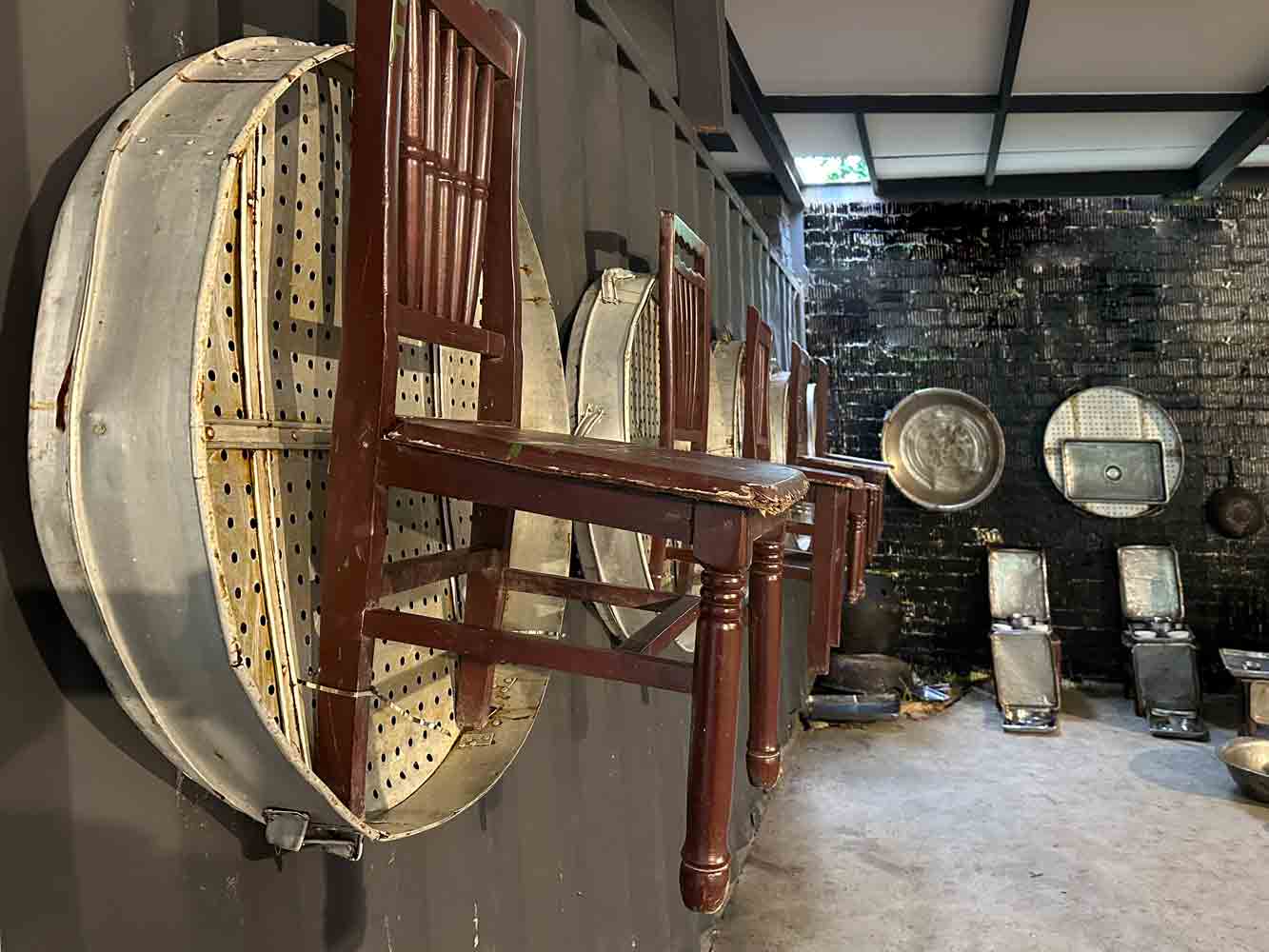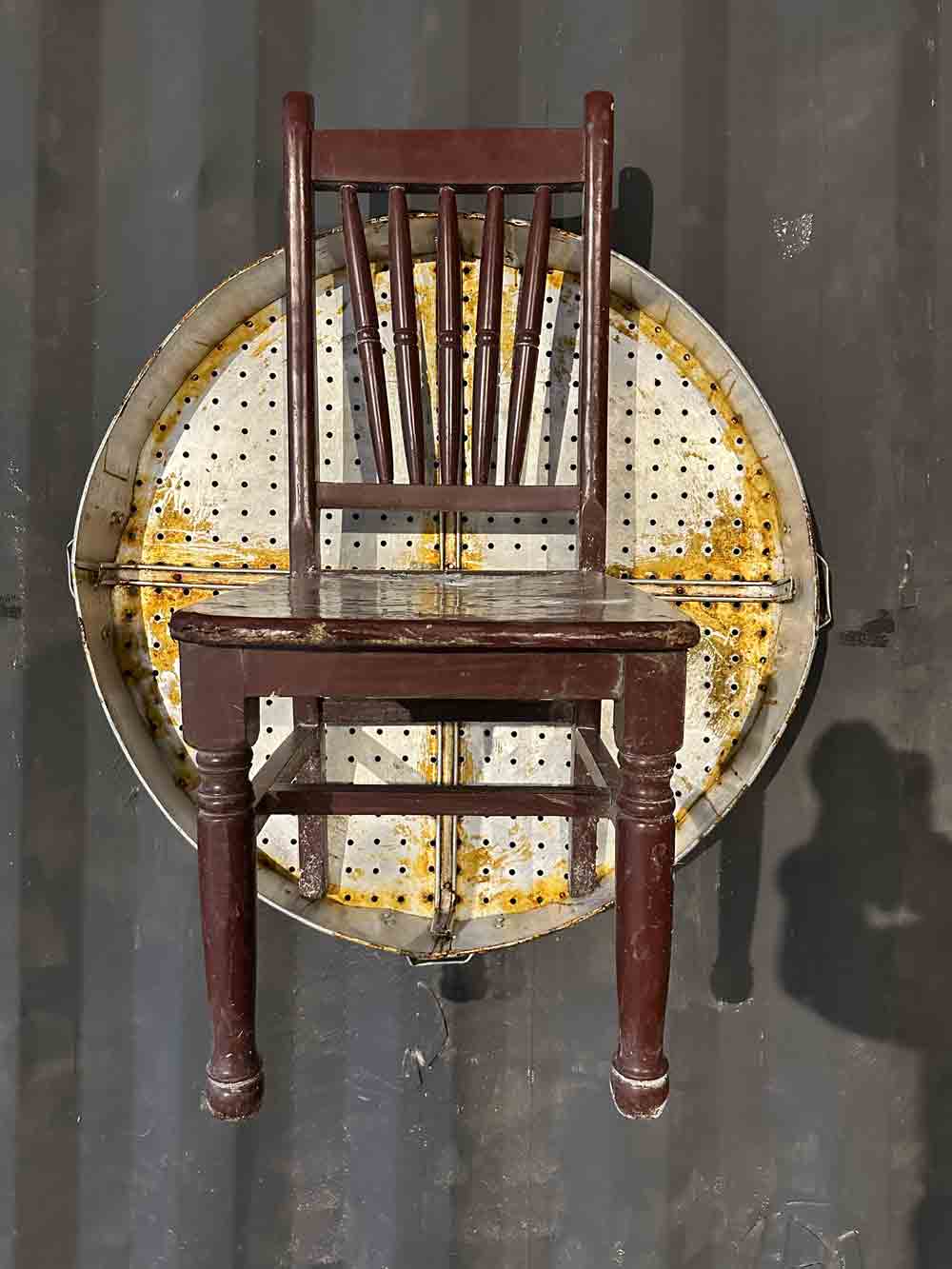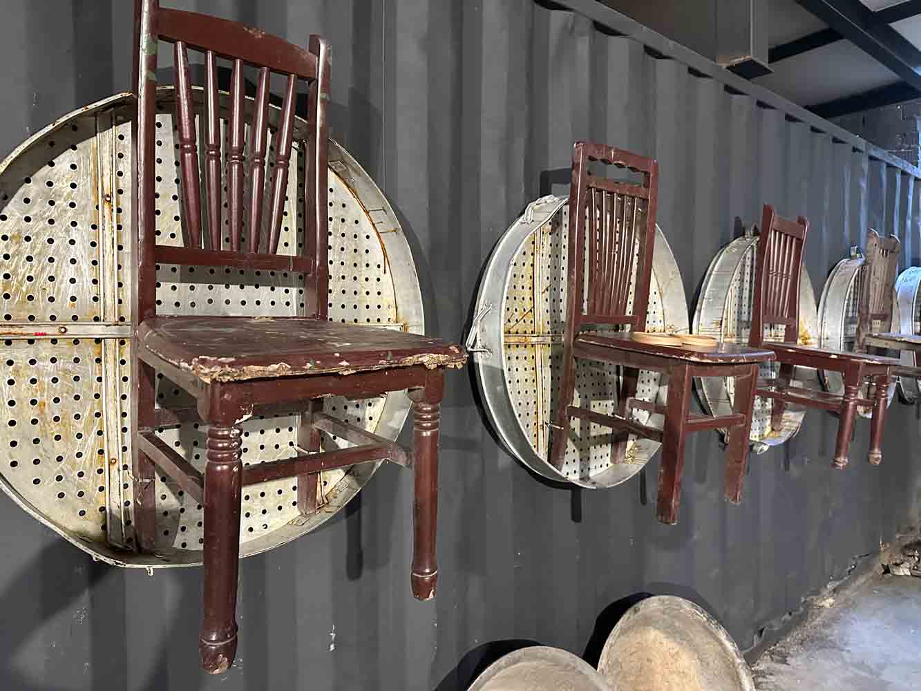 The choice of materials and techniques reflects the textures of desert life, as the metal pots are transformed into artistic canvases. The integration of photo-collage elements serves to bridge the gap between the tangible reality of the Nomads and the abstract, creating a visual narrative with universal appeal.